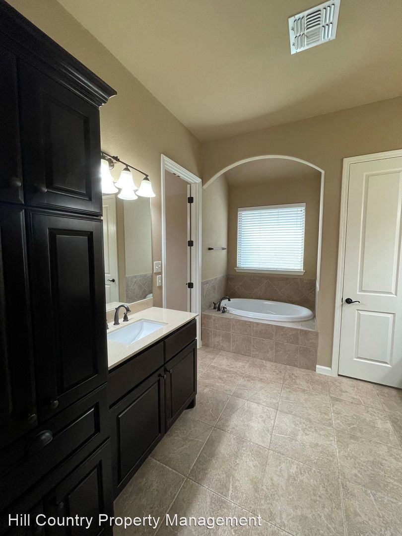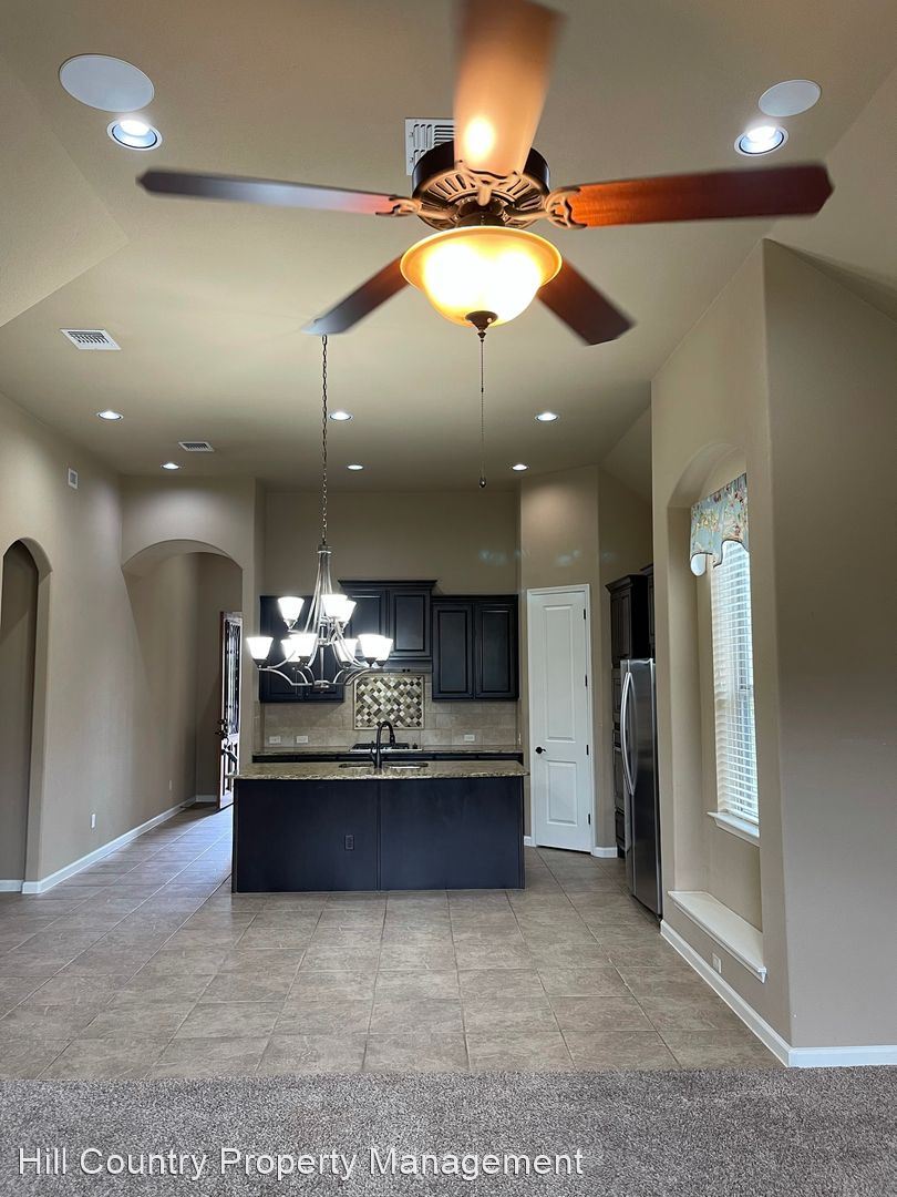 Stunning single-story home in a highly desirable neighborhood! - 3 bedrooms/2 bath plus an office/study. Open MIL floor-plan with high ceilings! Spacious kitchen with an island, granite counters, and stainless steel appliances! Master bathroom features two vanities, extra large tub, and a shower! Refrigerator, washer & dryer included! Manicured backyard with covered patio! Excellent location, just minutes from shopping/dining, parks, major roads! Highly-acclaimed Leander Independent School District!